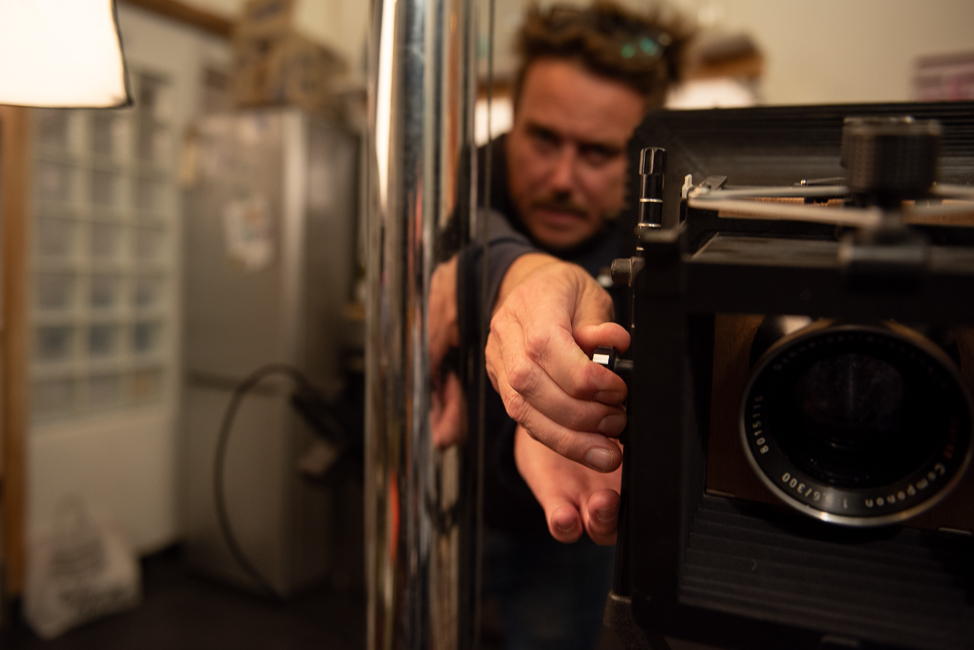 La Digital Obscura est une création originale et artisanale : une chambre photographique 20×25 cm, que j’ai conçue et bricolée pour capturer des images uniques. Fusionnant techniques traditionnelles et outils modernes, cet appareil hybride me permet de photographier directement le dépoli à l’aide de mon appareil numérique, offrant ainsi une esthétique particulière, entre passé et présent.